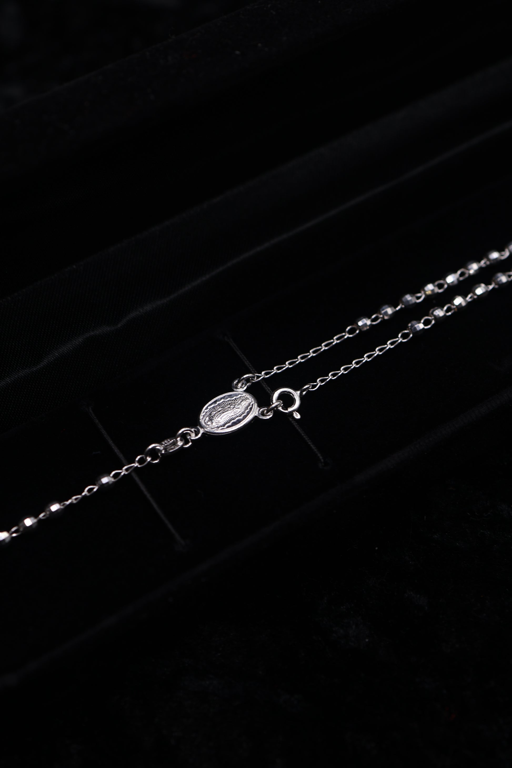 Crafted in Italy from premium sterling silver, this unisex rosary chain brings a sleek, high-quality finish to your jewelry collection. Wear it alone for a subtle statement or layer it with other pieces to create your own look. Whether you're building a custom necklace, bracelet, or meaningful religious piece, this chain is a solid foundation.